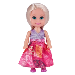 Dukken har farverige, glitrende kjoler med blomsterdetaljer, som lyser op i enhver samling og støtter fantasifuld leg.