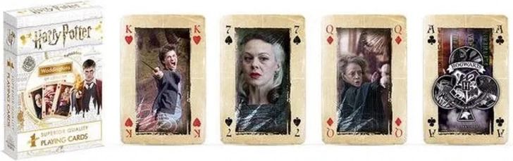 Oplev et stilfuldt sæt spillekort med HARRY POTTER-tema fra det britiske brand Waddingtons. Denne premium bunke med 55 kort med ikoniske figurer og motiver fra troldmandsverdenen byder på overlegen kvalitet, holdbar udførelse og fremragende spilleegenskaber til familieaftener og vennehygge.