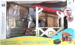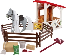 - Stald, indhegning, figur af lille hest, foder og plejeredskaber