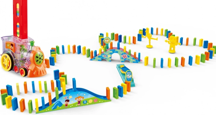 Dette interaktive dominotog er den ideelle legetøjsgave til små konstruktører. Børn kan nemt lave deres egne dominobaner og begejstret følge med, når brikkerne falder én efter én. Legetøjet udvikler øje–hånd-koordination, tålmodighed og fantasi.