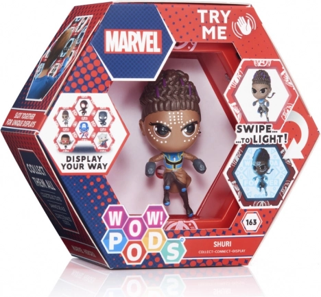 Udvid din samling med den ikoniske heltinde Shuri i en unik lysende WOW POD. Den integrerede infrarøde sensor sikrer automatisk tænding ved bevægelse, så figuren skiller sig ud både dag og nat. Ideel til hylden, skrivebordet eller børneværelset.