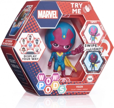 Udvid din samling med den originale, bagbelyste figur Marvel Vision fra WOW PODS-serien. Den integrerede infrarøde sensor reagerer på en håndbevægelse eller anden bevægelse og tænder et effektfuldt lys, der fremhæver figurens detaljer. Takket være den modulære konstruktion kan de enkelte PODS nemt forbindes og danne attraktive væginstallationer.