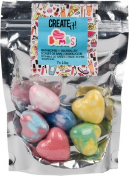 Læg et hjerte i det fyldte badekar, og se det langsomt opløses og bruser. Vandet lyser op i intense farver, og badet fyldes med en behagelig duft, der afspænder både krop og sind. Takket være den praktiske genlukkelige pose er dine bomber altid friske og klar til brug.