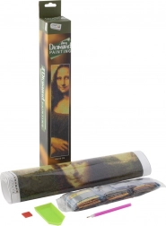 Oplev magien ved diamantmaling med dette billede af Mona Lisa i størrelsen 40x50 cm. At skabe med små farvede sten giver timer med afslapning og fascinerende resultater.