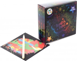 Sættet indeholder alt, hvad du behøver for at udforske skrabeteknikken. Hvert billede måler 9x9 cm og gør det muligt at skabe smukke motiver blot ved enkel skrabning. Sættet er udstyret med en skrabepenne i træ, som hjælper dig med at afsløre det farvede lag under den sorte overflade. Det hele er omhyggeligt pakket i en æske, der nemt rummer alle komponenter.