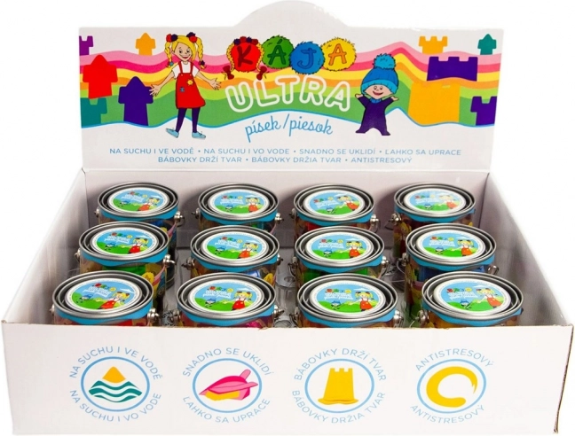 Kinetisk ULTRA-sand med licensen KAJA og BAMBULÁČEK i en pakke på 120 g og med en lille form giver 6 strålende farver. Det er let at forme, smudser ikke, er nemt at rydde op, og sandkager holder formen perfekt. Du kan endda bygge under vand, og takket være den bløde konsistens fungerer det også som en antistress-hjælp. Velegnet til børn fra 3 år.