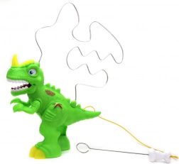 Test din fingerfærdighed med dette sjove elektroniske dinosaurus-labyrintspil! Brug staven med krog og forsøg at komme hele vejen igennem banen uden berøring. Ved en fejl brøler og lyser dinosauren, så der er garanti for spænding og grin. Ideelt til underholdning for både børn og voksne samt træning af finmotorik og tålmodighed.