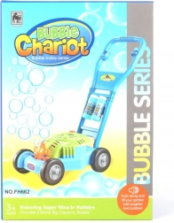 Det ergonomiske plastik-håndtag og den stabile konstruktion med brede hjul sikrer nem styring, selv for mindre børn. Fyld blot sæbeboble-væsken på, tryk på knappen, og se boblerne kappes om at flyve afsted.
