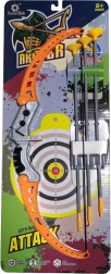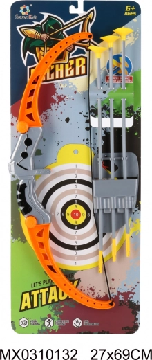 Dette børne-bueskydningssæt er ideelt til små begyndere. Den lette bue med behageligt greb gør det lettere at holde og sigte, mens pile med sugekopspidser er sikre til brug indendørs. I pakken medfølger 3 pile og en skydeskive trykt på underlaget for en hurtig start.