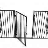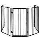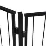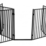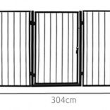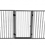 Praktisk sikkerhedsgitter til pejsen beskytter børn og kæledyr mod varme overflader og åben ild. Takket være fem hængslede segmenter kan det nemt tilpasses rummet, det har nem vægmontering, sikring mod utilsigtet åbning og er kompatibelt med de fleste pejse. Robust stålkonstruktion i sort, samlet bredde 304 cm og højde 74,5 cm giver pålidelig beskyttelse i stuen.