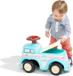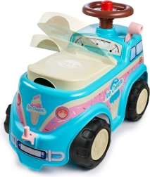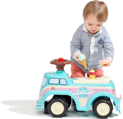 Børnekøretøj formet som en isbil, der tilbyder interaktiv og sjov leg fuld af fantasi. Ideelt til små børn, der elsker bevægelse og kreative lege.