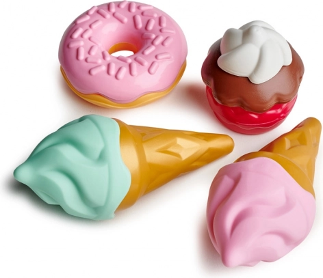 Sættet indeholder to is, en cupcake og en donut, som stimulerer fantasien og efterligner rigtige isbilsoplevelser.