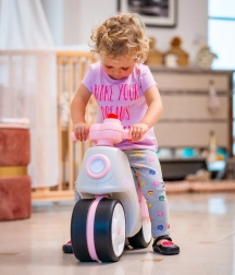 Anbefales til børn fra 1 år med en maksimal belastning på 25 kg. Løbecyklen udmærker sig ved retro stil og stille hjul, der giver en følelse af tryghed. Konstruktionen i materialer af høj kvalitet sikrer lang levetid og sikker brug.