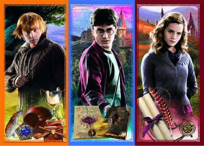 Licenseret design med heltene Harry, Ron og Hermione vil glæde enhver fan. Trefl-kvaliteten garanterer en smuk og detaljeret illustration.
