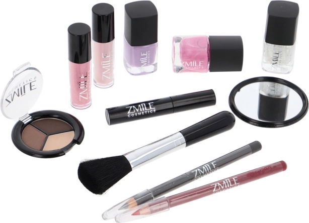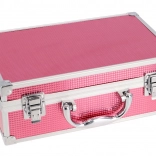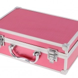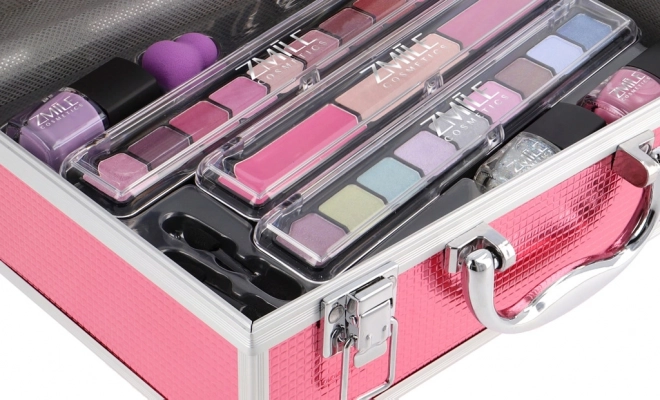 Kosmetikkuffert med aluminiumsramme Marry Berry med integreret spejl – i alt 38 stk. tilbehør. Indeholder 18× øjenskygger, 2× blush, 1× highlighter, 1× brynvoks, 2× lipgloss, 3× neglelak, 1× mascara, 1× eyeliner, 1× lipliner, 2× dobbeltsidet applikator til øjenskygge, 1× dobbeltsidet applikator til bryn, 1× blush-børste, 1× rundt spejl og 1× mini makeupsvamp. Dermatologisk testet, opfylder EU’s strenge standarder.