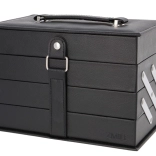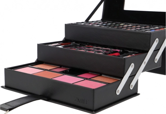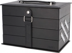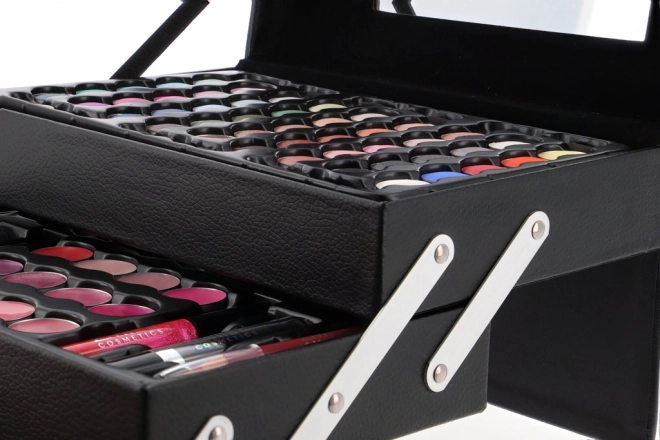 Kosmetikboks Beauty Case Black er det ideelle valg for kosmetikelskere, der søger en stilfuld og praktisk måde at organisere deres makeupsamling på. Denne elegante boks er lavet af sort læder og indeholder i alt 82 stykker tilbehør, hvilket gør den til en uvurderlig hjælper i din skønhedsrutine.