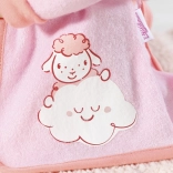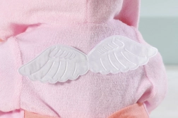 Lad din Baby Annabell opleve magiske øjeblikke med denne stilfulde badekåbe og pyjamas. Badekåben er pyntet med vinger, hvilket gør den ikke bare smart, men også et behageligt tilbehør til leg. Under badekåben har dukken en kort heldragt med et print af et får, der nyder et regnbuebad. For at holde dukkens fødder dejligt varme indeholder sættet også lyserøde sokker med små vingeillustrationer.