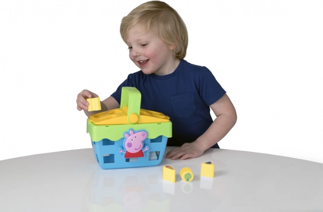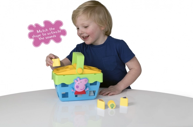 Formsorteringskurv Picnic Kurv Gurli Gris hjælper børn med at genkende forskellige former på en sjov måde, hvilket forbedrer deres rumlige forståelse.