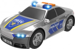 Hurtigt til undsætning med Teamsterz politibil. Bilen har lys og realistiske motor- og sirenelyde, som aktiveres med et enkelt tryk på en knap. Bilen leveres i sølv og blå med trykte politigrafiske detaljer og har fritløbende hjul, så der kan leges med den overalt. Denne politibil er den perfekte gave til enhver lille, entusiastisk chauffør og byder på timevis af fantasifuld underholdning. Kræver 3 x LR44-batterier (inkluderet). Velegnet fra 3+ år.