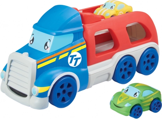 Teamsterz Tiny Transporter: Farverig biltransporter egnet til børn 1-4 år. Understøtter fantasifuld leg og finmotorik.