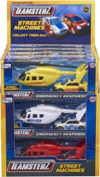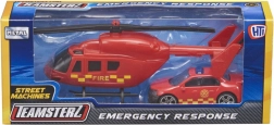 TEAMSTERZ-sættet kombinerer sjov og robusthed: detaljeret helikopter med manuelt drejelige blade og en actionfyldt indsatsbil med frihjul. Takket være metalrammen (trykstøbt) og kvalitetsplastdele får børn en realistisk leg som politi, brandvæsen og redning.