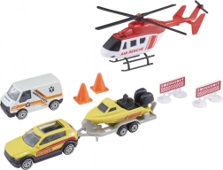Helikopter, vejredning, 4x4 med træk, båd/jet ski med trailer og nødstilbehør – alt klar til actionfyldte missioner på vand og land.