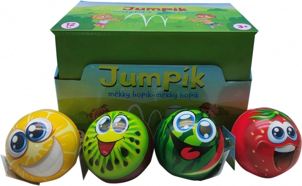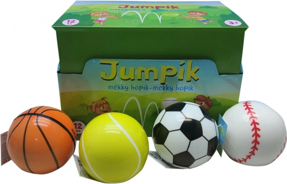 Sjov blød og ultralet hoppebold med diameter på 9,6 cm, der springer fantastisk som en klassisk hoppebold. Fås i assorterede motiver (sport, dyr, frugt), velegnet til børn fra 3 år.