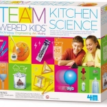 Sættet 4M Kitchen Science bringer smarte og sikre eksperimenter, som børn udfører trin for trin ved hjælp af ingredienser, du finder derhjemme – eddike, natron, citron, salt eller kartofler. Læring bliver til leg: af citrusfrugter opstår elektrisk drevet ur, natron og eddike viser et vulkanudbrud, og simple apparater demonstrerer principper i fysik og kemi.