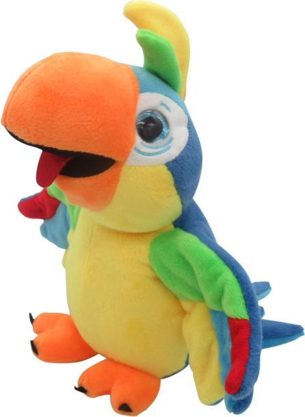 En sjov plyskammerat, som gentager alt, hvad du siger med en munter stemme. Når den taler, vifter den komisk med vingerne, hvilket begejstrer børn. Optagelser op til 10 sekunder, strømforsyning 3× AAA (medfølger ikke). Velegnet til børn fra 3 år.