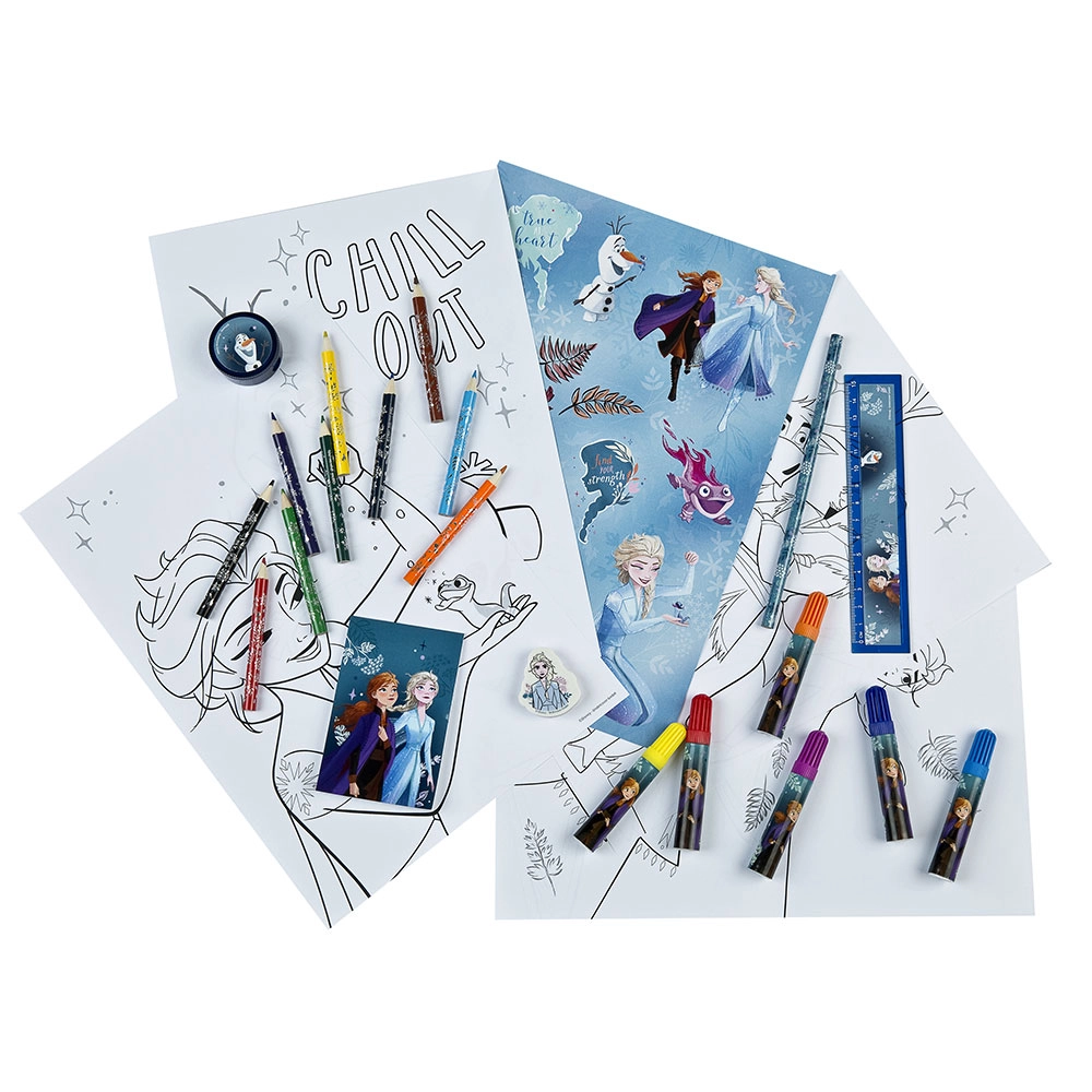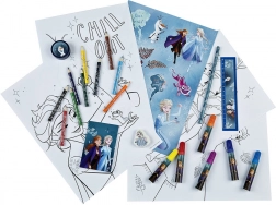 Dette kreative sæt med de populære heltinder fra FROZEN er ideelt til små kunstnere. Det tilbyder et bredt udvalg af kreative materialer og tilbehør, som er perfekte til hjemmekreationer, på farten og som en gaveoverraskelse. Takket være det komplette indhold kan børn nemt lave billeder, plakater og pynte deres hæfter.
