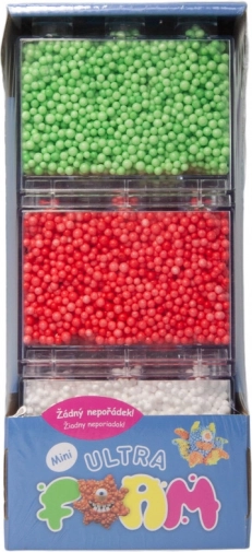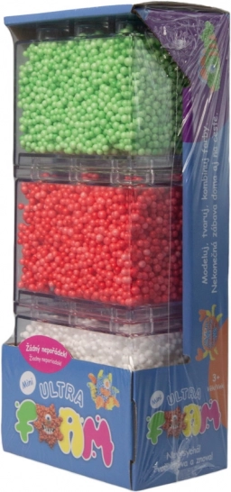 Mini-pakken Ultra Foam indeholder tre farver: grøn, rød og hvid, som du kan kombinere og forme til forskellige figurer.