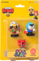 Sættet inkluderer tre samlerfigurer fra Brawl Stars temaet i levende farver, pakket i en gul blisterpakke.