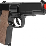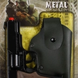 • Pistolen har en metalkrop for et realistisk udseende og et plasthåndtag for en komfortabel greb.