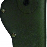 Pakken indeholder et kvalitets sort læderhylster med metalnitter for styrke og en knaplukning for sikker fastgørelse af våbnet.