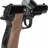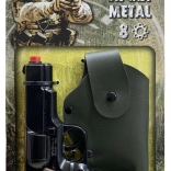 Politipistol Kommando er det perfekte legetøj til små lovens vogtere. Denne otte-skuds metalpistol tilbyder et realistisk udseende og leveres desuden med et læderhylster til nem bæring.