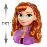 Anna frisørhovedet giver masser af muligheder for leg med hår! Anna har sit ikoniske, skinnende røde hår, som er ideelt til børstning og styling. Stylinghovedet indeholder 13 sjove accessories til at have på og dele, inklusive én hårkam, fire hårspænder, tre klips, to snefnug, to hårelastikker og én stor hårklemme. Dit barn vil elske at børste Annas hår og bruge de søde hårspænder til at style og pynte Annas skinnende, bølgende lokker. Alder 3+