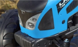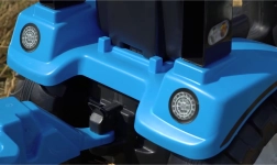 Det robuste plastkarrosseri, den markante front med “forlygter” og de store profildæk klarer daglig udendørs leg på gårdspladsen eller i haven.