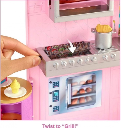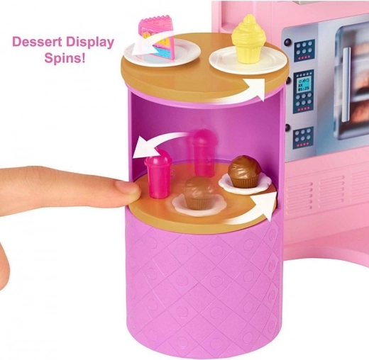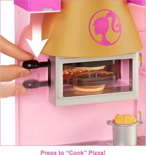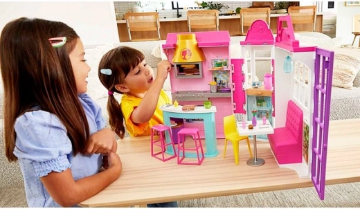 Børn kan blive en del af oplevelsen i Barbie restauranten, hvor de kan hjælpe Barbie®-dukken (*ikke inkluderet*) med at tage imod bestillinger og sørge for komfortable siddepladser til gæsterne. Med seks legeområder er der masser af muligheder for historiefortælling.