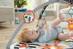 Efterhånden som barnet vokser, kan buerne nemt fjernes for at skabe et stort område til tid på maven. De høje farvekontraster understøtter tidlig synsudvikling, overfladen er blødt polstret for komfort og robust til daglig brug.