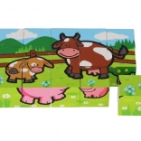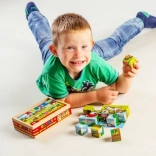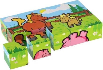 Træklodser med farverige billeder af forskellige husdyr er et fremragende værktøj til børns udvikling. Ved korrekt samling vises et af seks billeder, hvilket understøtter de mindstes logiske tænkning og fantasi. Under bygning og nedbrydning af tårnene forstår børn princippet om balance og grundlaget for årsag og virkning.