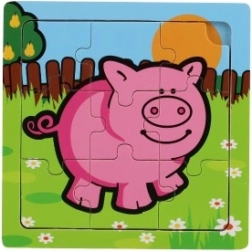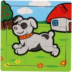 Puslespillet er lavet af kvalitets træ, der giver holdbarhed og en behagelig fornemmelse ved berøring. Ni brikker er placeret på en træplade med fræset kant, hvilket gør det lettere at samle og hjælper med at holde brikkerne på plads.