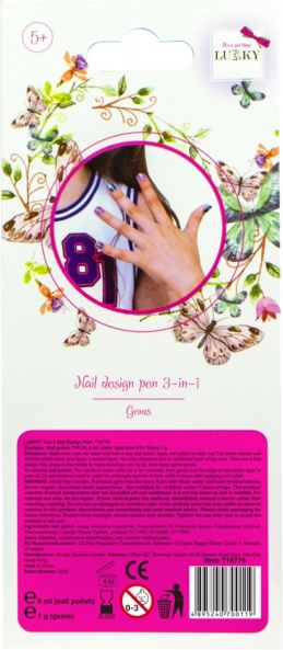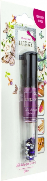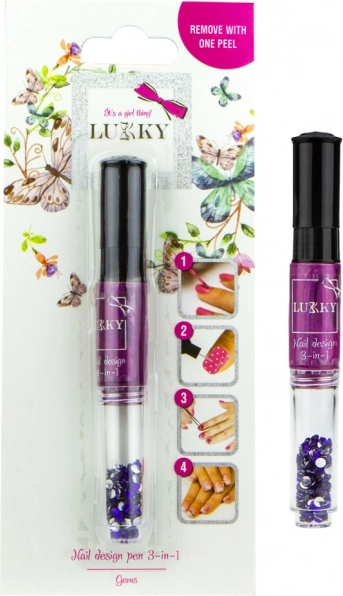 Pynt dine negle med en unik stil ved hjælp af Lukky aftagelig neglelak og glimmer. Dette produkt giver nem påføring og hurtig fjernelse uden neglelakfjerner – det er nok blot at trække det af! Pakken indeholder: