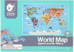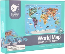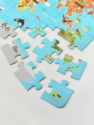 Puslespillet indeholder livlige farver, der fanger opmærksomheden og gør det lettere for børn at navigere i verdenskortet.