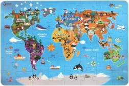 Børn kan udforske alle verdens hjørner med dette smukt illustrerede træpuslespil. Ved at placere brikkerne læres de at genkende de forskellige kontinenter og oceaner.