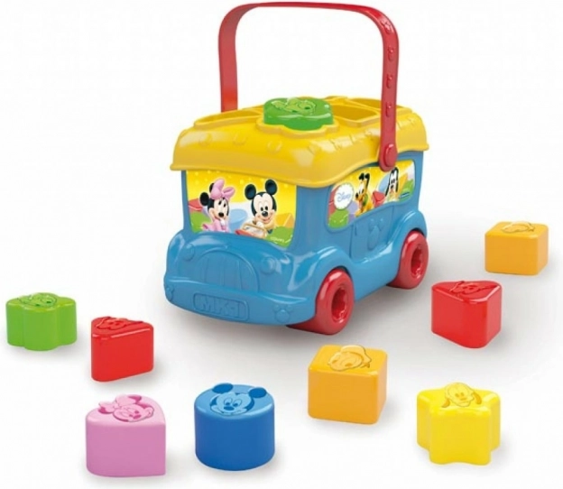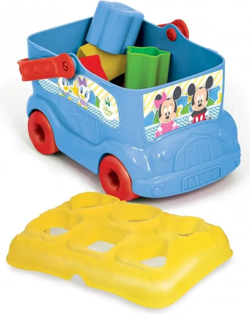 Disney Mickey puttebus er en plastikboks i form af en bus, som ikke bare er munter at se på, men også meget praktisk. Låget har åbninger til at putte former i, hvilket giver børn mulighed for at træne logik og finmotorik. Bussen indeholder ni farvede klodser i forskellige former.