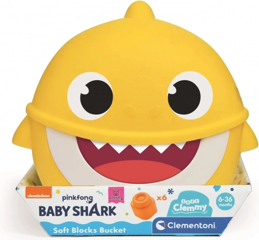 Oplev byggelegen med Bløde Clemmy-klodser Baby Shark, ideelle til små børn fra 6 måneder. Sættet indeholder 6 bløde, farverige klodser og en spand formet som en smilende haj, perfekt til opbevaring af klodserne og til vandleg. Klodserne tåler opvaskemaskine og understøtter sanse- og motoriske færdigheder.