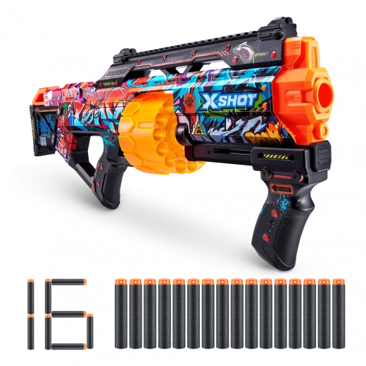 X-SHOT Skins Last Stand – Dit første sikre våben og 16 kugler i sættet. Rækkevidde op til 27 m