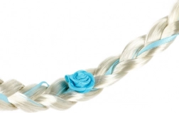 Denne charmerende hårbøjle med lang blond fletning og lyseblå detaljer forvandler enhver pige til en isprinsesse. Takket være den universelle form og en indre diameter på ca. 12,5 cm er den behagelig at have på og sidder godt, selv når der danses og leges. Et perfekt tilbehør til karnevalskostumet, fødselsdagsfesten og magiske udklædninger derhjemme.