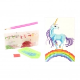I pakken finder du alt, hvad du behøver for at skabe: applikator (pen), vokspude til nem optagning af sten, bakke til sortering og poser med farvede sten. Sættet er egnet til børn fra 5 år og understøtter tålmodighed, finmotorik og koncentration.