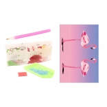 Diamantmaling er en sjov og beroligende teknik, hvor du med en applikator overfører små “diamanter” til et selvklæbende lærred efter en fortrykt kode. Stenene er sorteret i poser efter bogstaver og symboler, så du præcist ved, hvor hver lille del hører til. Resultatet er et glitrende billede på 10 × 15 cm, som pynter i dit værelse eller fungerer som en kær gave.